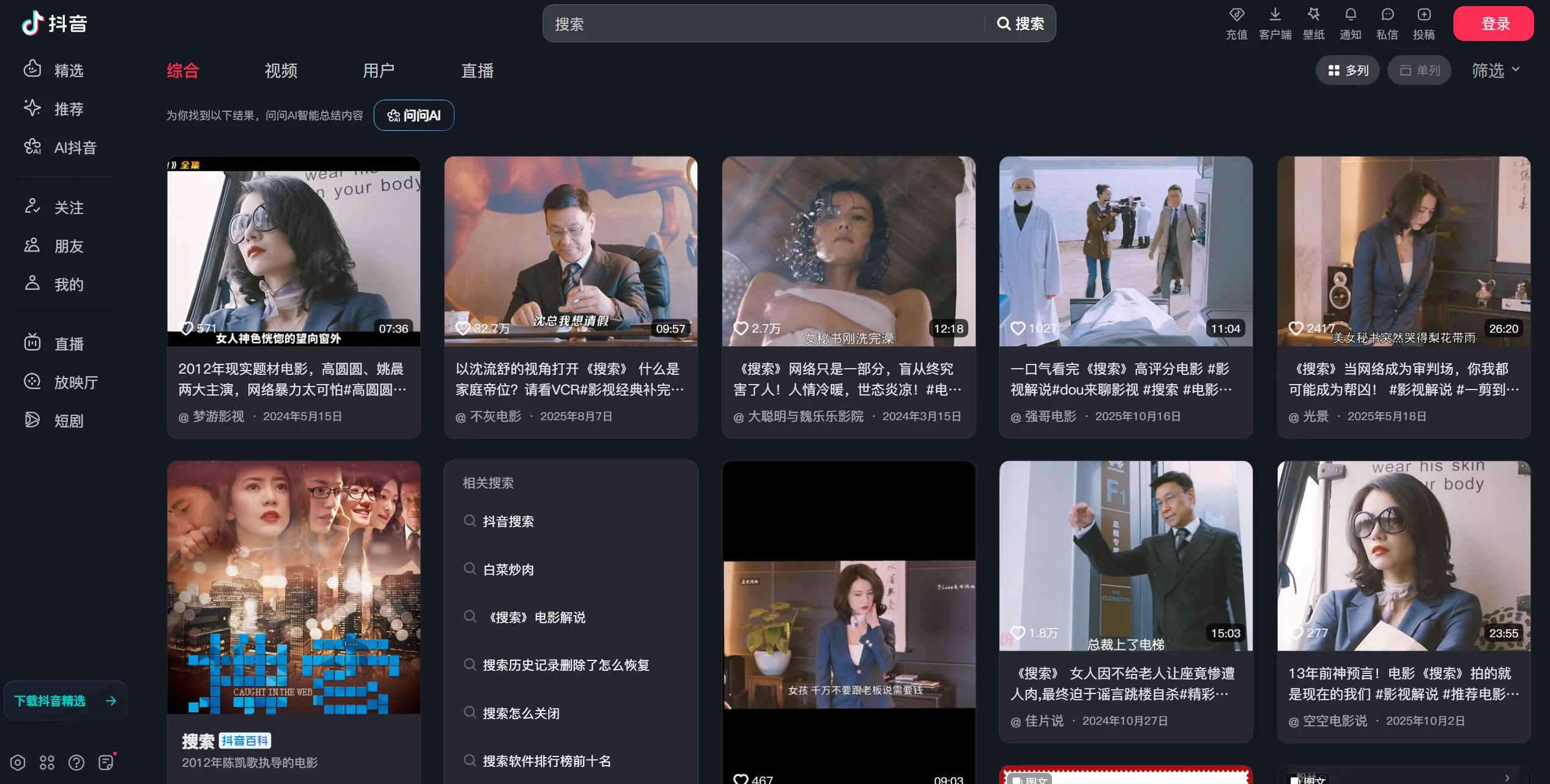 AI抖音推出网页版search.douyin.com,侧重工具化搜索与信息整合,支持免登录搜索,响应速度快,界面简洁。